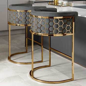Yeni modern endüstriyel çok renkli metal bar sandalyesi kadife kumaş bar taburesi petek arkalığı